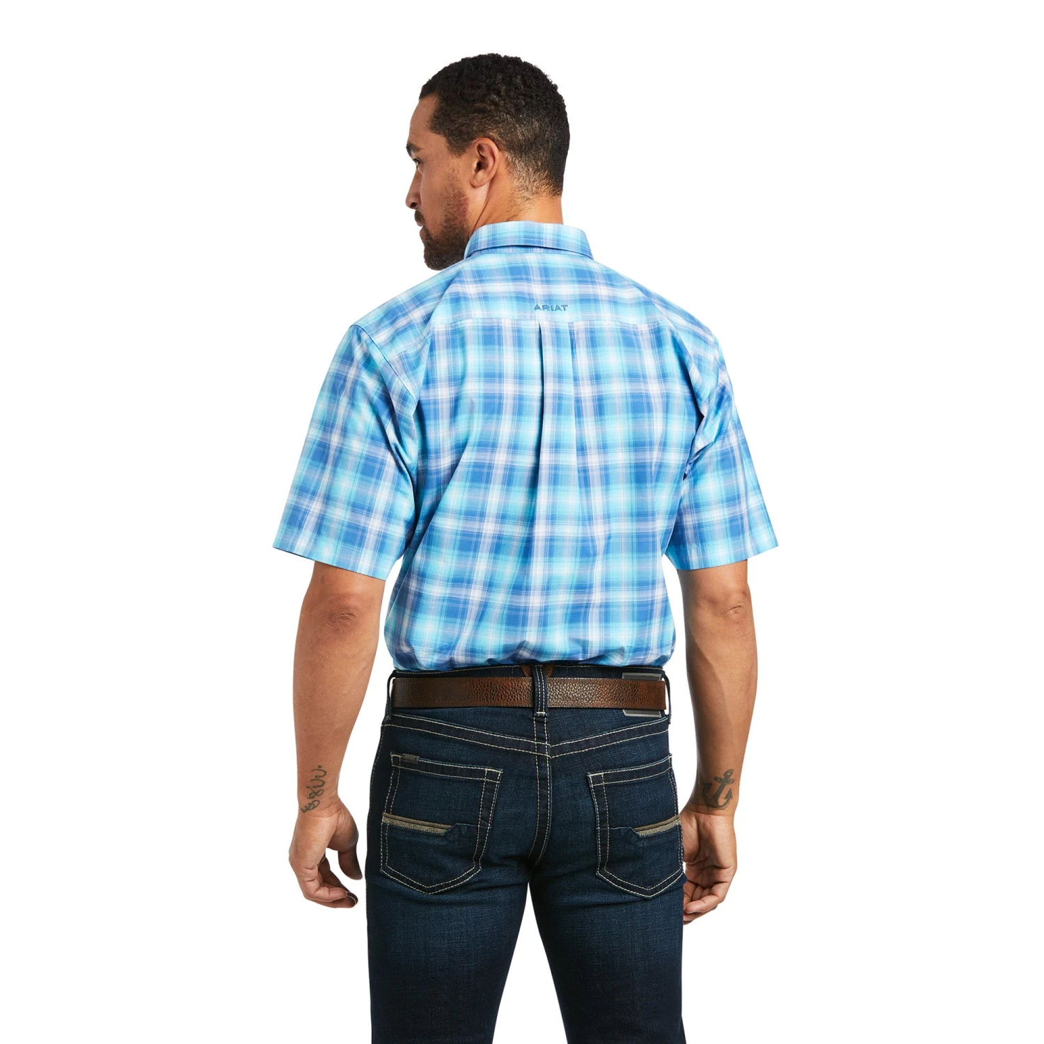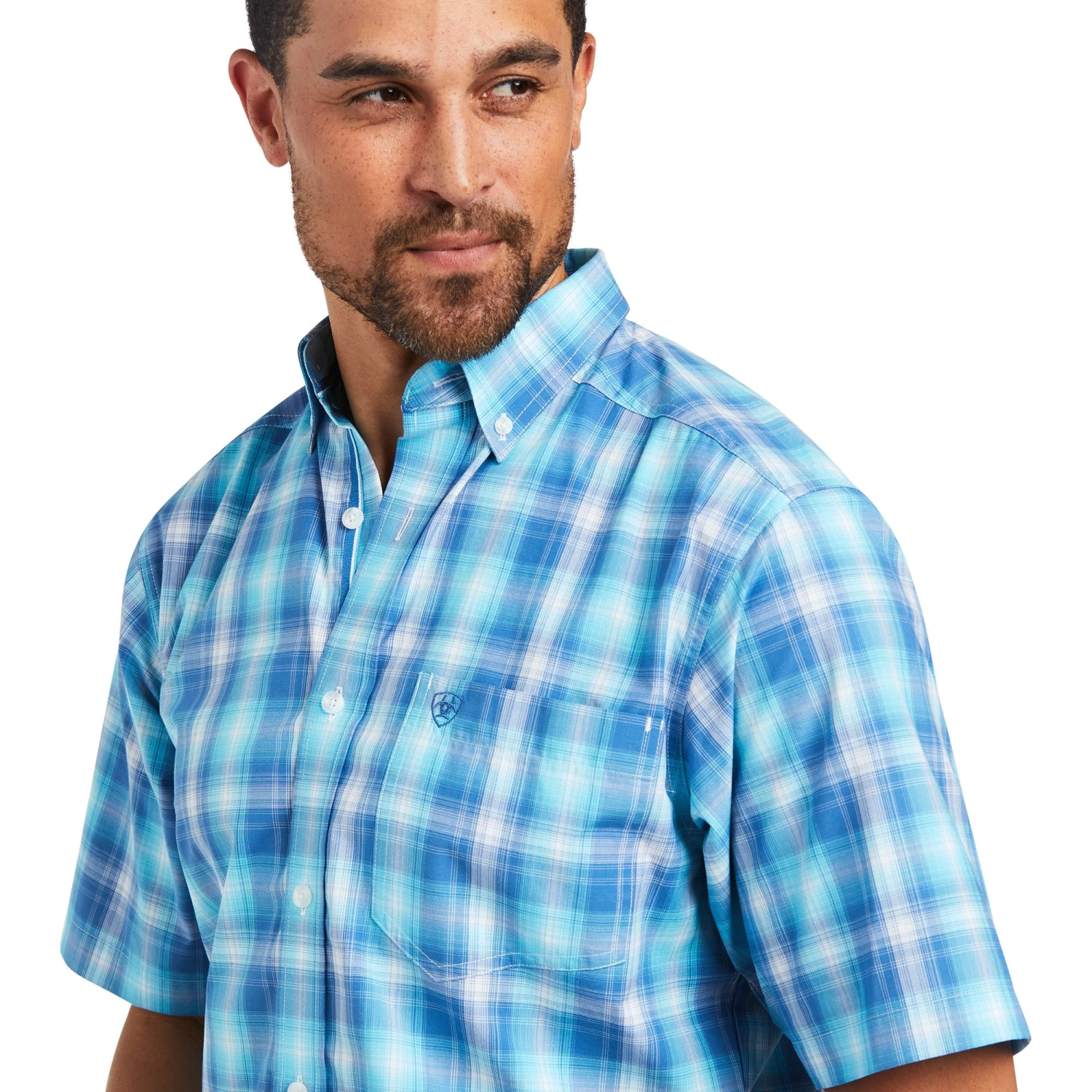Bachelor Button Plaid Short Sleeve Pro Series Ian Fitted Shirt Button Down Shirt.
