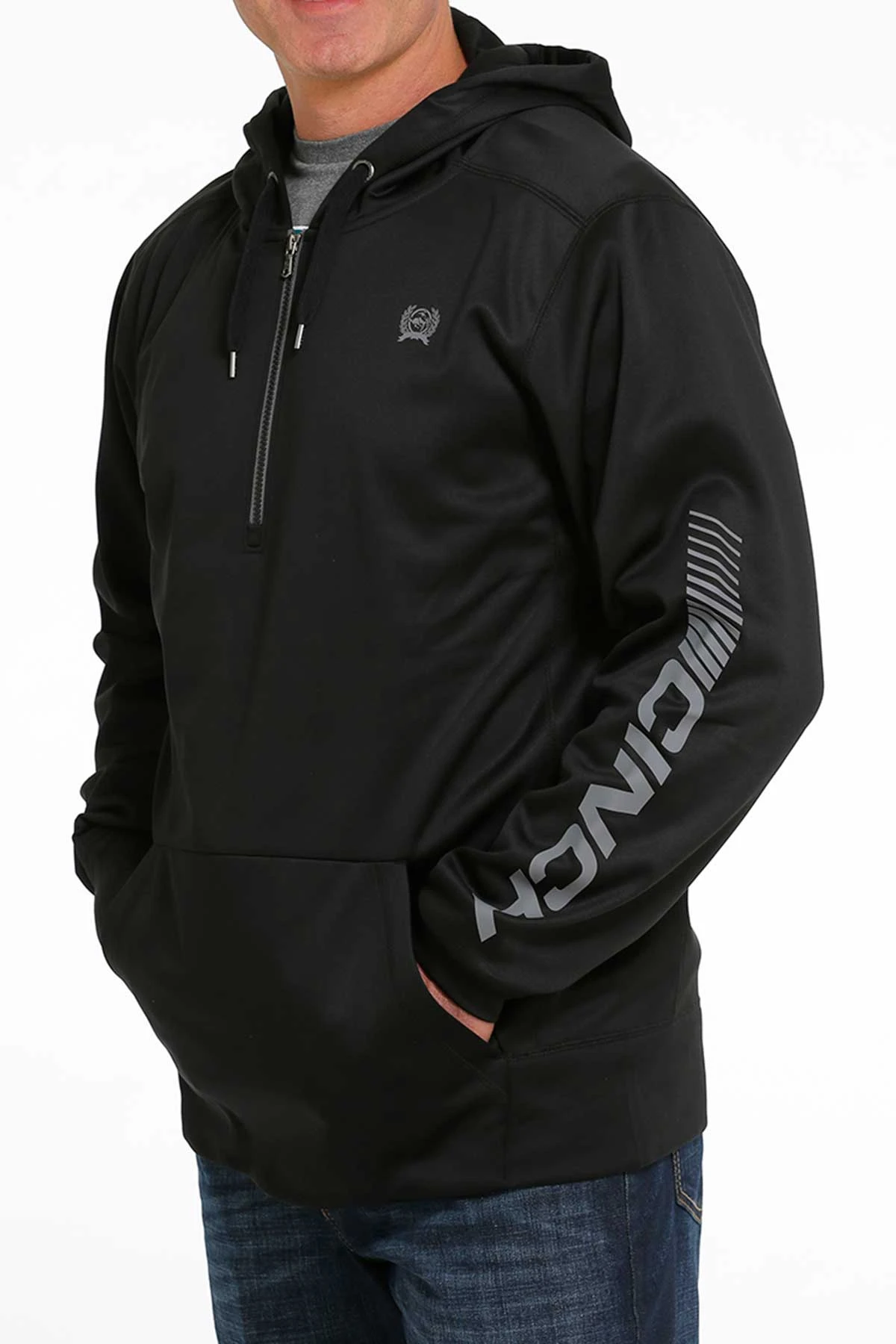 Cinch Men’s Black 1/4 Zip Stripe Logo Hoodie