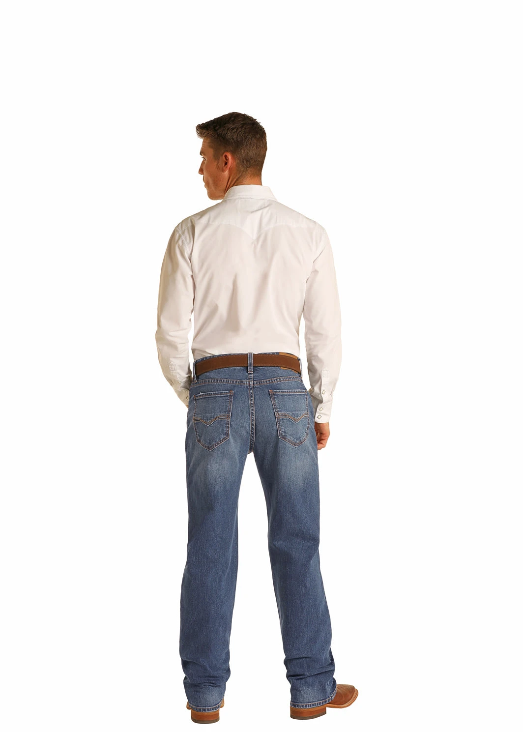 Dark Vintage Wash Reflex Stretch Denim Double Barrel Jean.