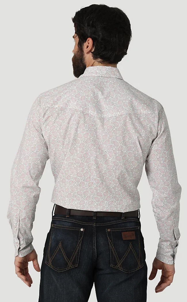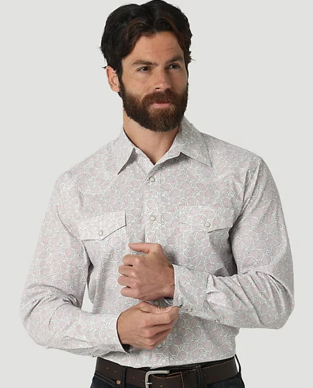 Metal Paisley Print Long Sleeve Snap Front Shirt.
