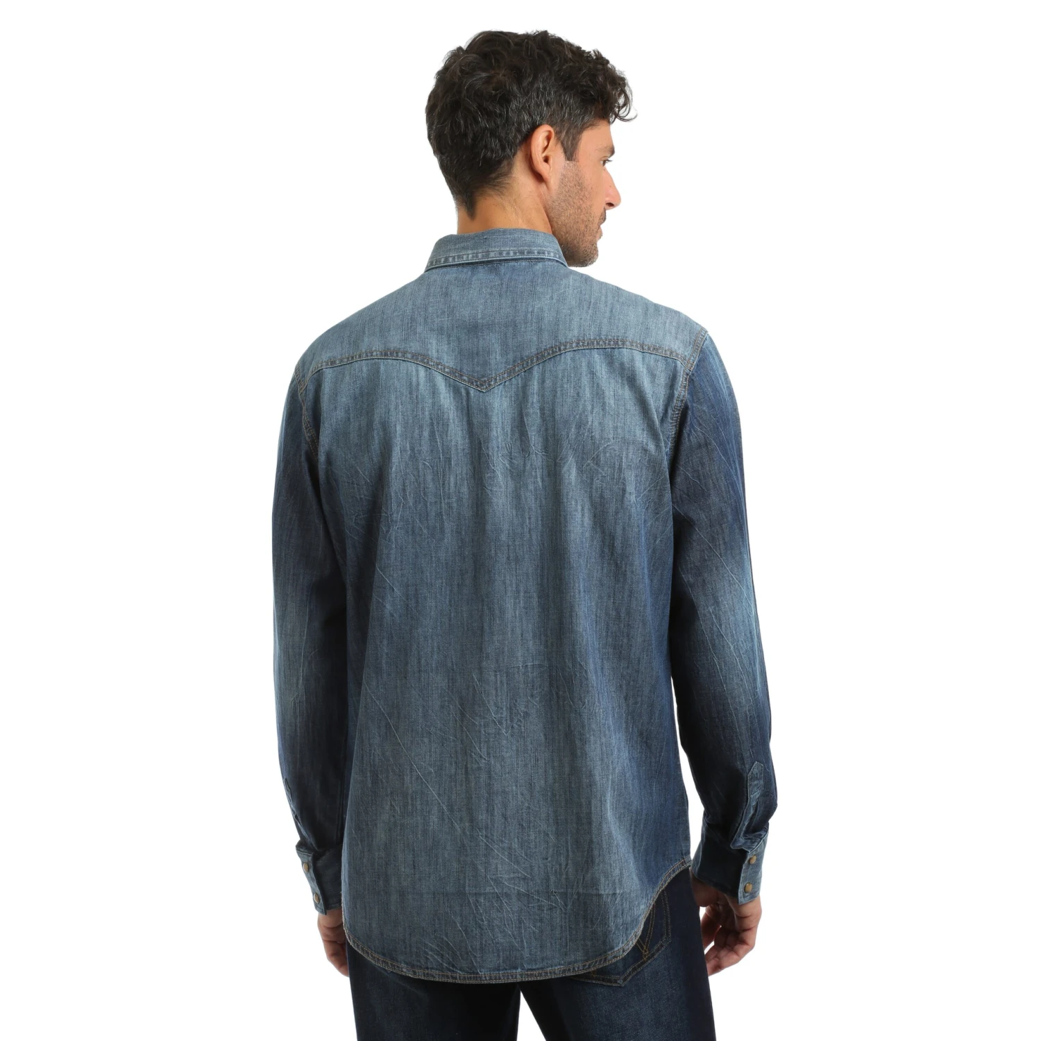 Blue Denim Long Sleeve Retro Snap Front Shirt.