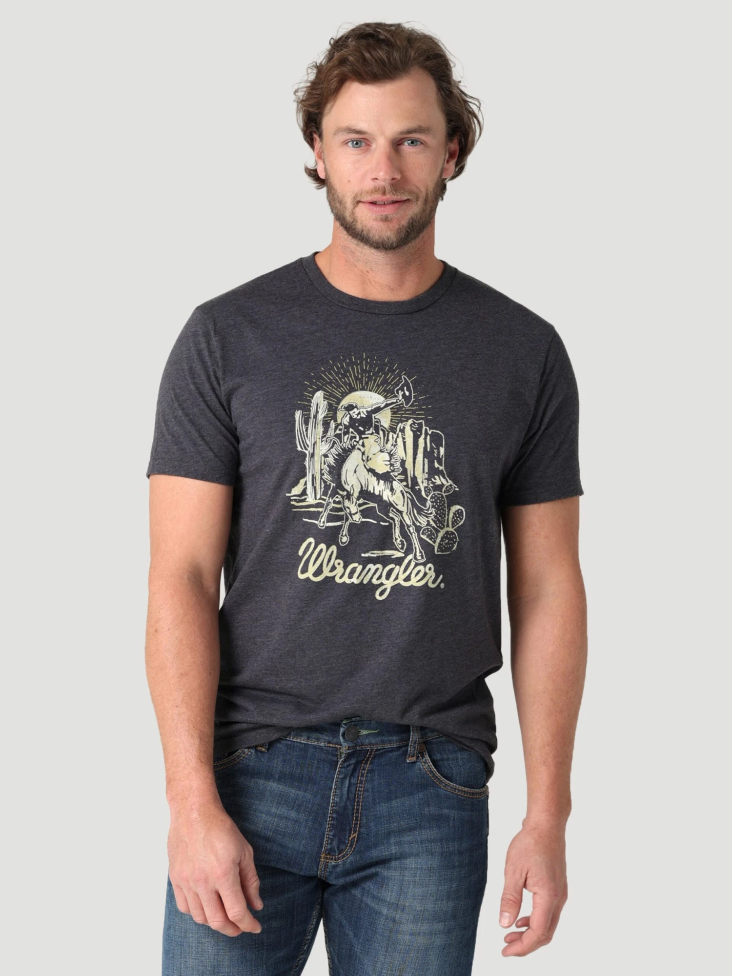 Charcoal Heather Short Sleeve Bronco Desert Graphic T-Shirt.